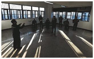 1月1日早7时,迎着新年的第一缕阳光,搬迁新址的上海提篮桥监狱新岸艺术团罪犯排练迎新春联欢晚会节目。本报记者 杨晋峰 摄 2月 守护春运