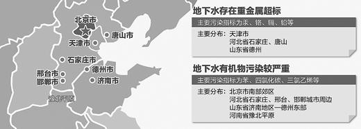 初步调查表明,华北平原局部地区地下水存在重金属超标现象,主要污染指标为汞、铬、镉、铅等,主要分布在天津市和河北省石家庄、唐山以及山东省德州等城市周边及工矿企业周围;局部地区地下水有机物污染较严重,主要污染指标为苯、四氯化碳、三氯乙烯等,主要分布在北京市南部郊区,河北省石家庄、邢台、邯郸城市周边,山东省济南地区—德州东部,河南省豫北平原等地区。