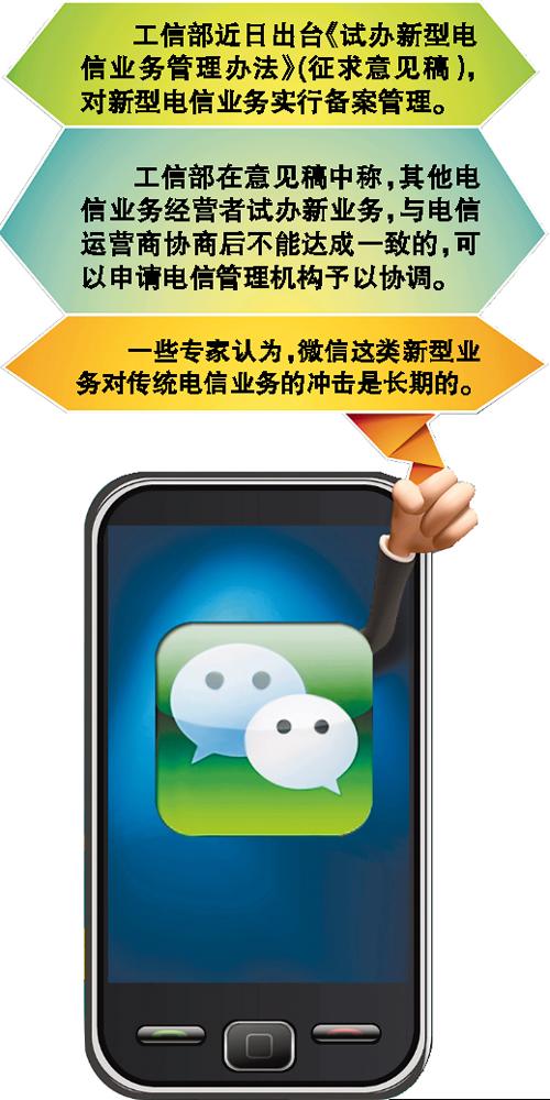 此前,微信等新型业务并未列入《电信业务分类目录》中,工信部希望借机将微信等列入监管范畴。