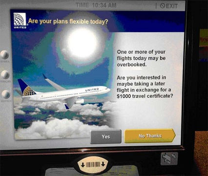 林小姐见事态升级,给自己辩白说:“我只是给你们翻译,这不关我的事,她把你的护照交给我,我也不知道怎么回事。”刘先生说:“你刚刚也说了是超售,怎么她的态度还这么恶劣?”林小姐连忙说:我可没说,我可没说!但后来,美联航其他工作人员也告诉刘先生,正赶上圣诞节,机票超售许多。刘先生在美联航的登机屏幕上,也看到这样的信息:您乘坐的飞机超售,如果自愿推迟出发一天,可以获得1000美元的补偿。