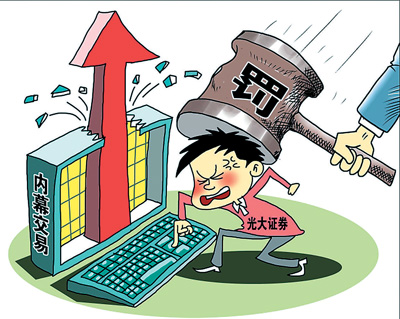 中国证监会30日通报光大证券异常交易案调查和处理结果,认定光大证券构成内幕交易等多项违法违规行为,没收光大证券违法所得8721万元,并处以5倍罚款,罚没款金额总计5.23亿元,同时停止其证券自营业务。