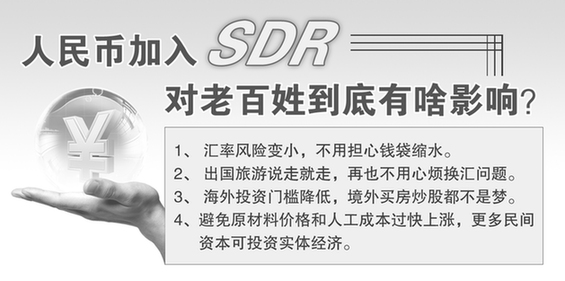 11月30日,国际货币基金组织(IMF)执董会决定将人民币纳入特别提款权(SDR)货币篮子,新的SDR货币蓝子将于明年10月1日生效。中国人民银行有关负责人今日称,此决定,是对中国经济发展和改革开放的肯定,更是对人民币国际化的肯定,其意义重大,这也将为百姓和企业家带来实实在在的好处,无论海外购物还是境外投资,都将更为便利。