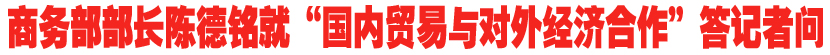 [主持人 刘笑萍]大家上午好!记者会现在开始。本场记者会的主题是“扩消费促流通和发展对外经贸”,我们邀请的嘉宾是商务部部长陈德铭先生。下面我们请陈部长简单致辞。[03-07 10:00]