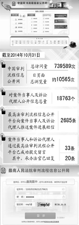 11月13日,经过三个多月的试运行,中国审判流程信息公开网正式开通。除最高人民法院外,20个省(区、市)已经建立全省统一的审判流程信息公开平台,并在中国审判流程信息公开网建立链接。