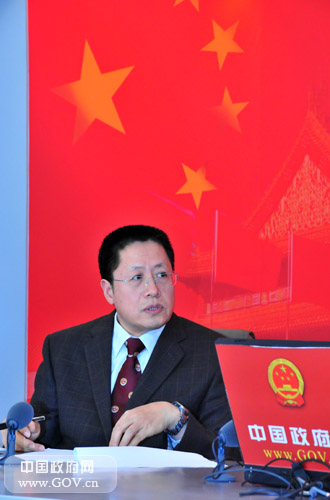 2010年12月14日15时,审计署党组成员、总审计师孙宝厚接受中国政府网专访,就《党政主要领导干部和国有企业领导人员经济责任审计规定》进行现场解读并回答网民提问。图为孙宝厚在访谈中。